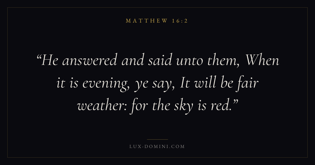 He answered and said unto them, When it is evening, ye say, It will be fair weather: for the sky is red.