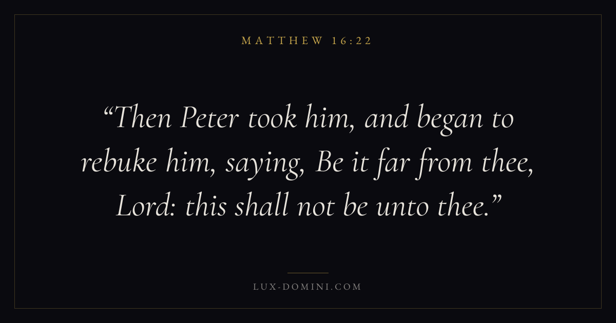 Then Peter took him, and began to rebuke him, saying, Be it far from thee, Lord: this shall not be unto thee.
