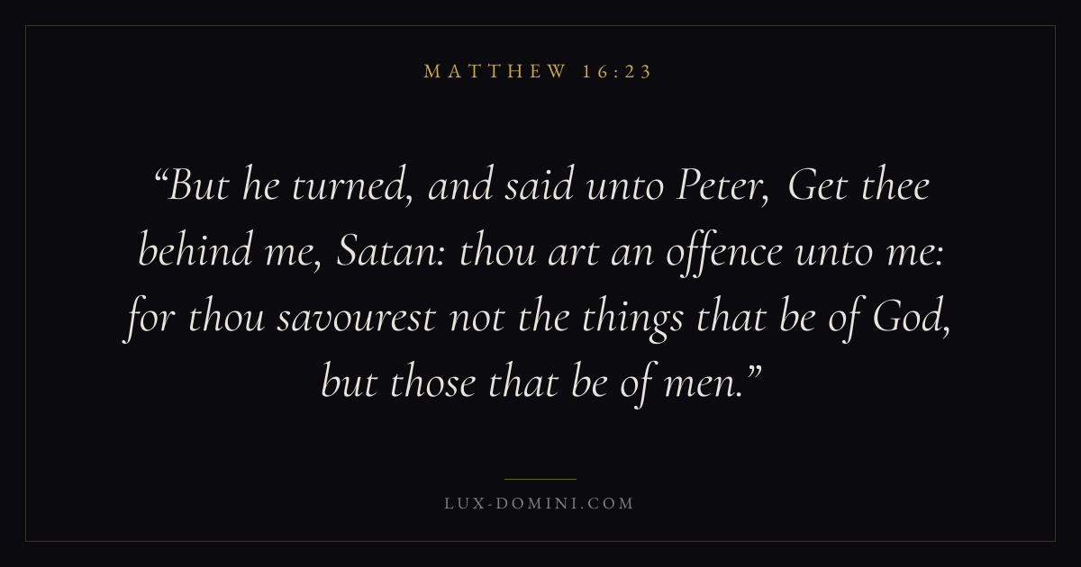 But he turned, and said unto Peter, Get thee behind me, Satan: thou art an offence unto me: for thou savourest not the things that be of God, but those that be of men.