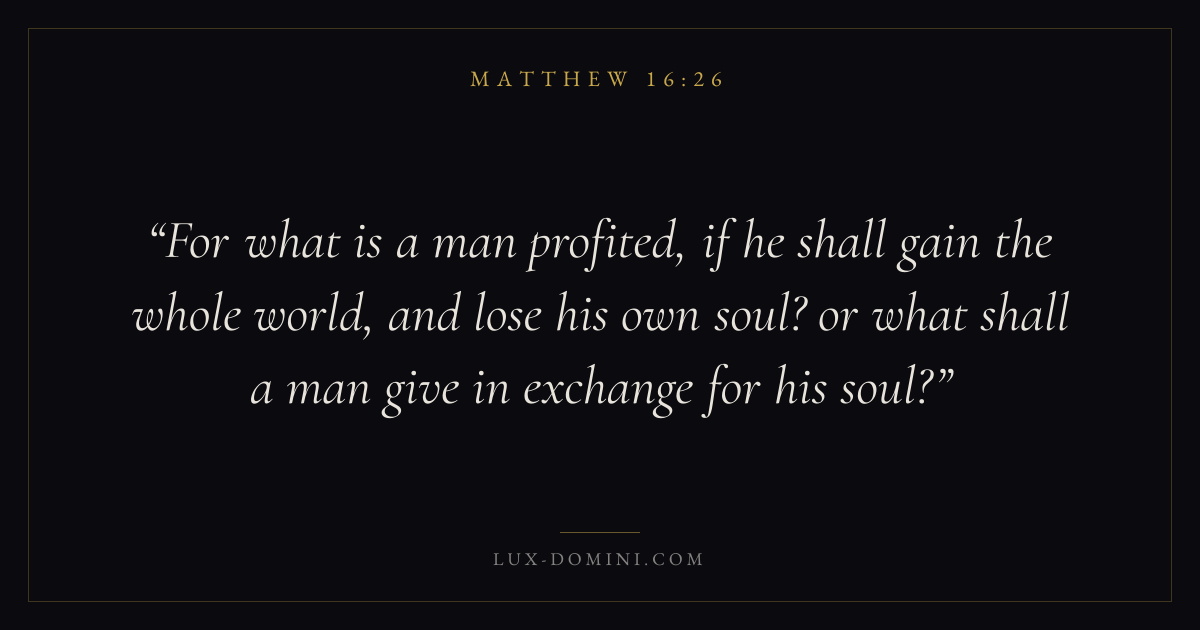 For what is a man profited, if he shall gain the whole world, and lose his own soul? or what shall a man give in exchange for his soul?