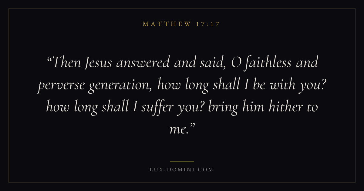 Then Jesus answered and said, O faithless and perverse generation, how long shall I be with you? how long shall I suffer you? bring him hither to me.