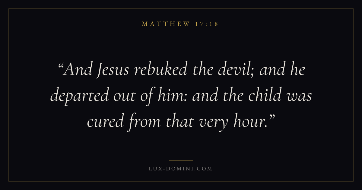 And Jesus rebuked the devil; and he departed out of him: and the child was cured from that very hour.