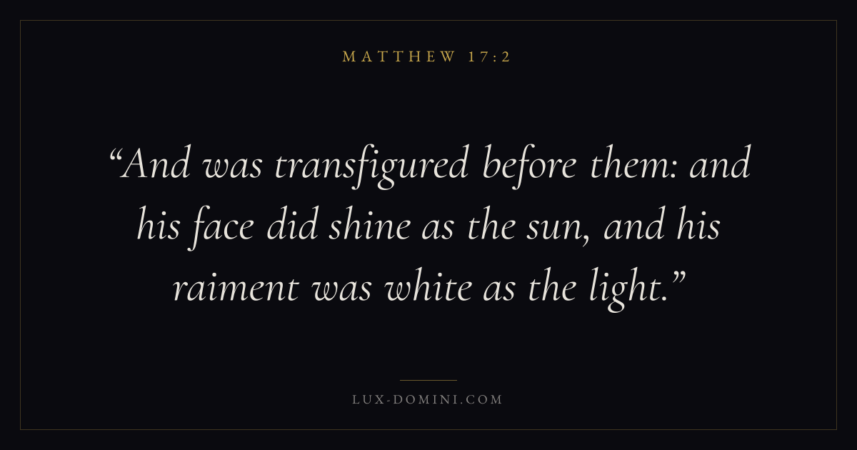 And was transfigured before them: and his face did shine as the sun, and his raiment was white as the light.