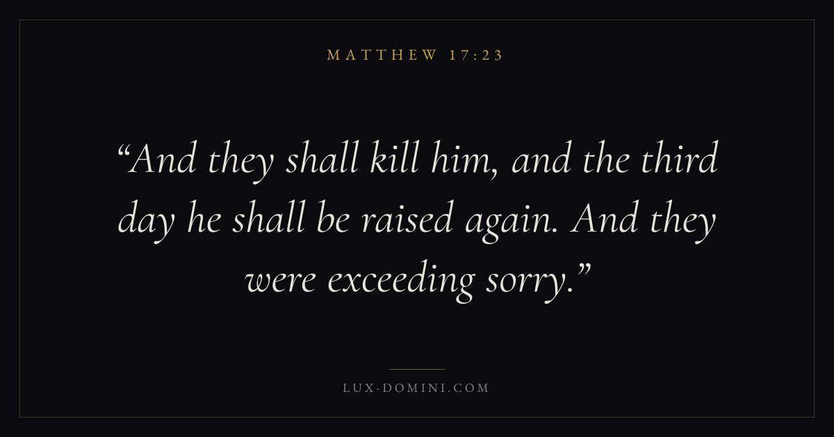 And they shall kill him, and the third day he shall be raised again. And they were exceeding sorry.