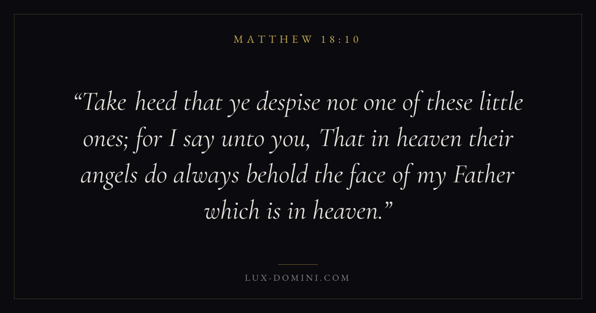 Take heed that ye despise not one of these little ones; for I say unto you, That in heaven their angels do always behold the face of my Father which is in heaven.