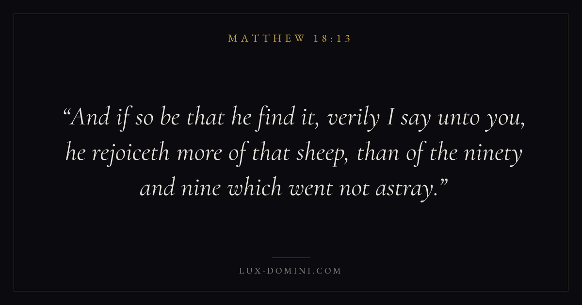 And if so be that he find it, verily I say unto you, he rejoiceth more of that sheep, than of the ninety and nine which went not astray.