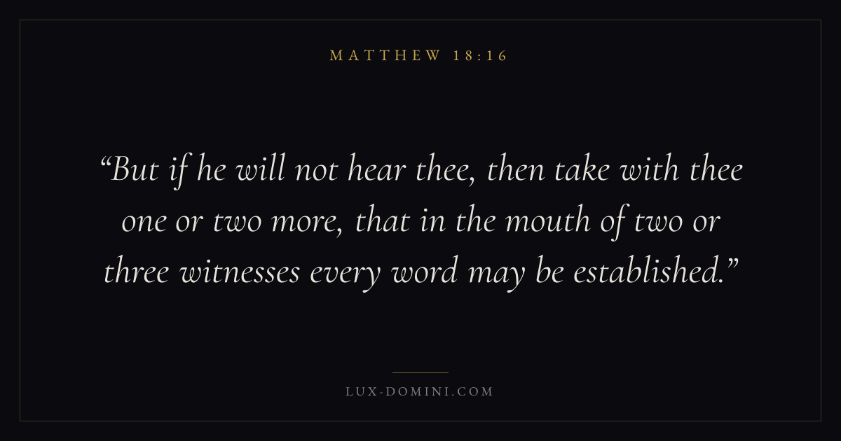 But if he will not hear thee, then take with thee one or two more, that in the mouth of two or three witnesses every word may be established.