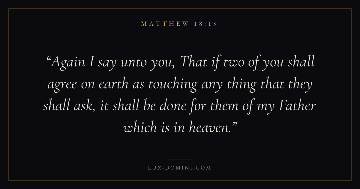 Again I say unto you, That if two of you shall agree on earth as touching any thing that they shall ask, it shall be done for them of my Father which is in heaven.