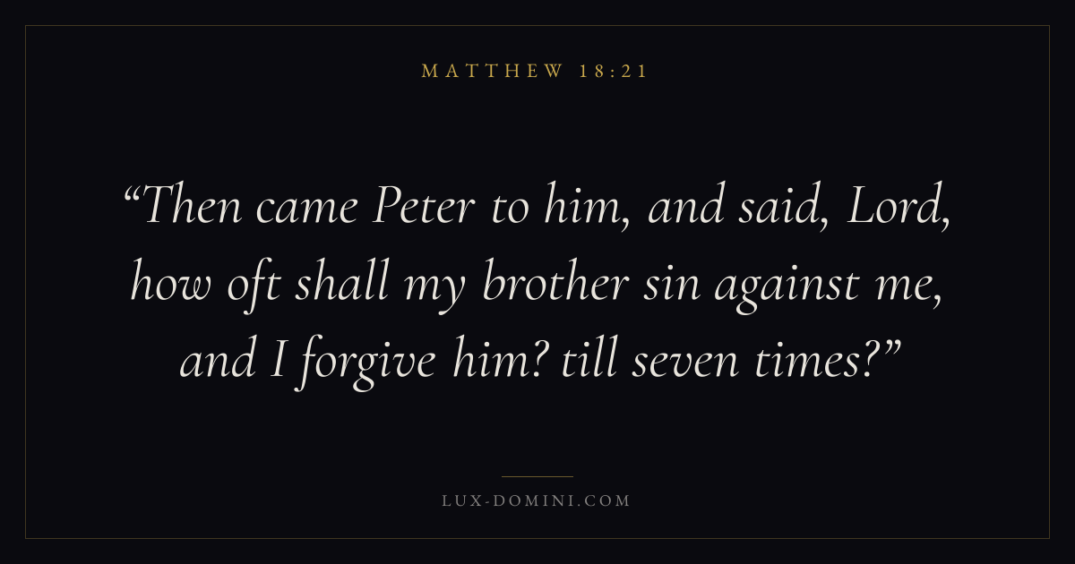 Then came Peter to him, and said, Lord, how oft shall my brother sin against me, and I forgive him? till seven times?