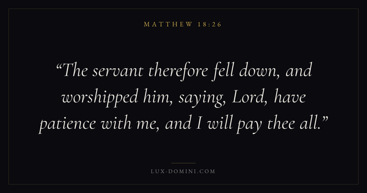 The servant therefore fell down, and worshipped him, saying, Lord, have patience with me, and I will pay thee all.