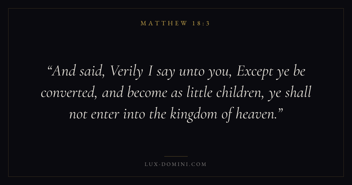 And said, Verily I say unto you, Except ye be converted, and become as little children, ye shall not enter into the kingdom of heaven.