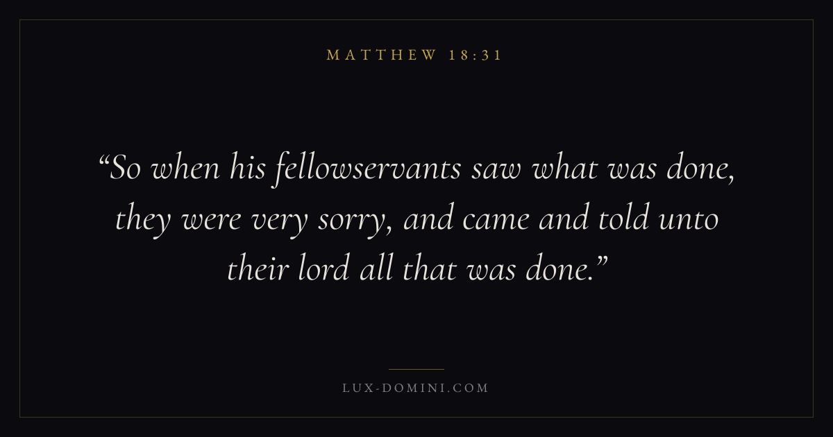 So when his fellowservants saw what was done, they were very sorry, and came and told unto their lord all that was done.