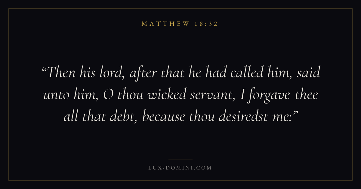 Then his lord, after that he had called him, said unto him, O thou wicked servant, I forgave thee all that debt, because thou desiredst me: