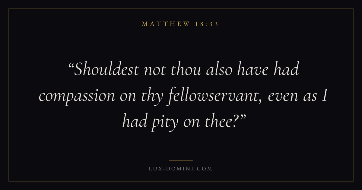 Shouldest not thou also have had compassion on thy fellowservant, even as I had pity on thee?