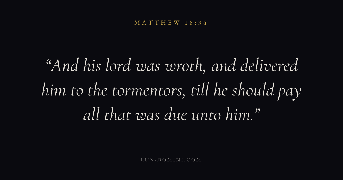 And his lord was wroth, and delivered him to the tormentors, till he should pay all that was due unto him.