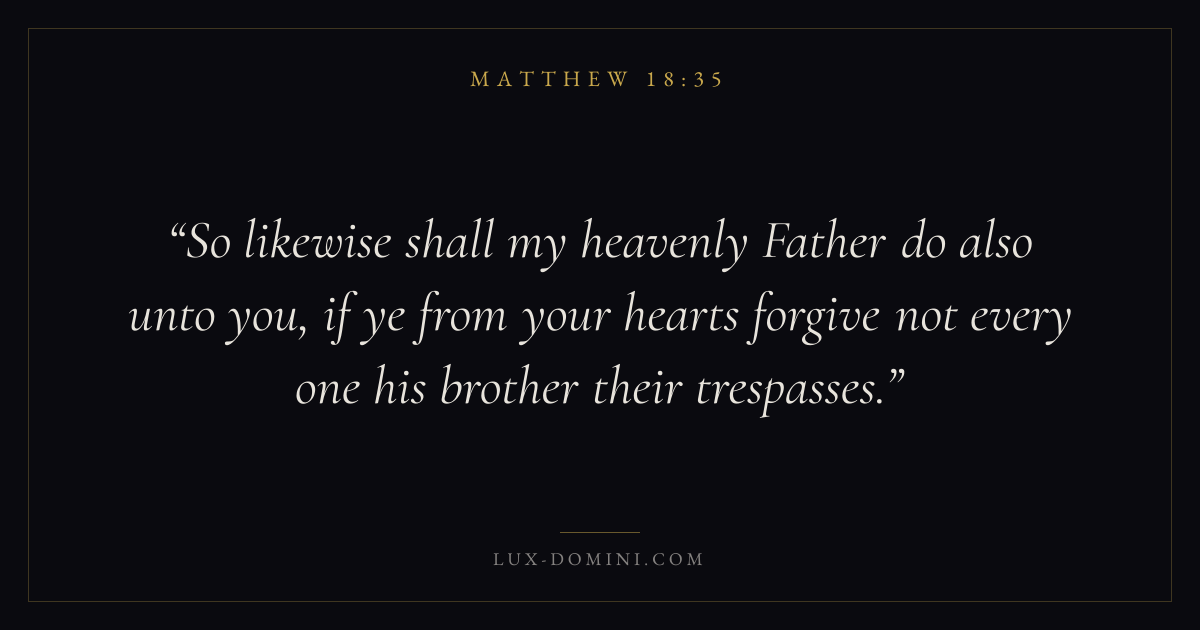 So likewise shall my heavenly Father do also unto you, if ye from your hearts forgive not every one his brother their trespasses.