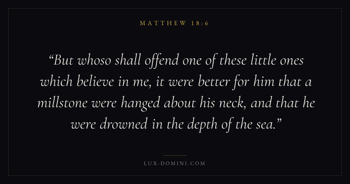 But whoso shall offend one of these little ones which believe in me, it were better for him that a millstone were hanged about his neck, and that he were drowned in the depth of the sea.