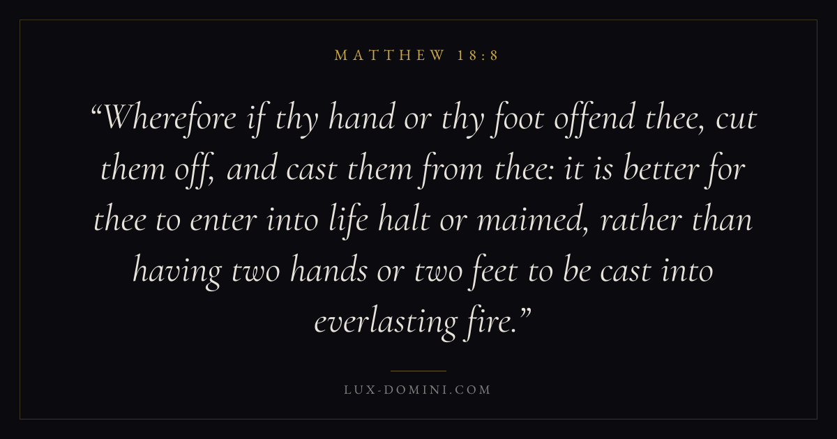Wherefore if thy hand or thy foot offend thee, cut them off, and cast them from thee: it is better for thee to enter into life halt or maimed, rather than having two hands or two feet to be cast into everlasting fire.