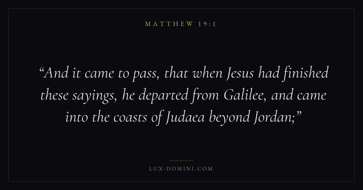 And it came to pass, that when Jesus had finished these sayings, he departed from Galilee, and came into the coasts of Judaea beyond Jordan;