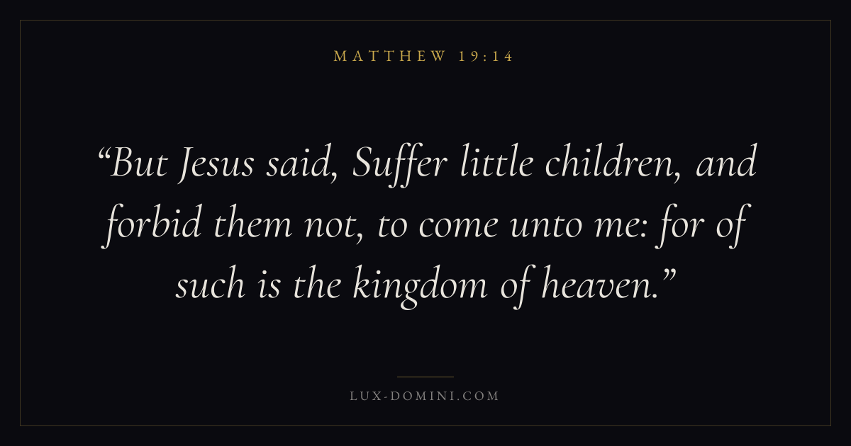 But Jesus said, Suffer little children, and forbid them not, to come unto me: for of such is the kingdom of heaven.