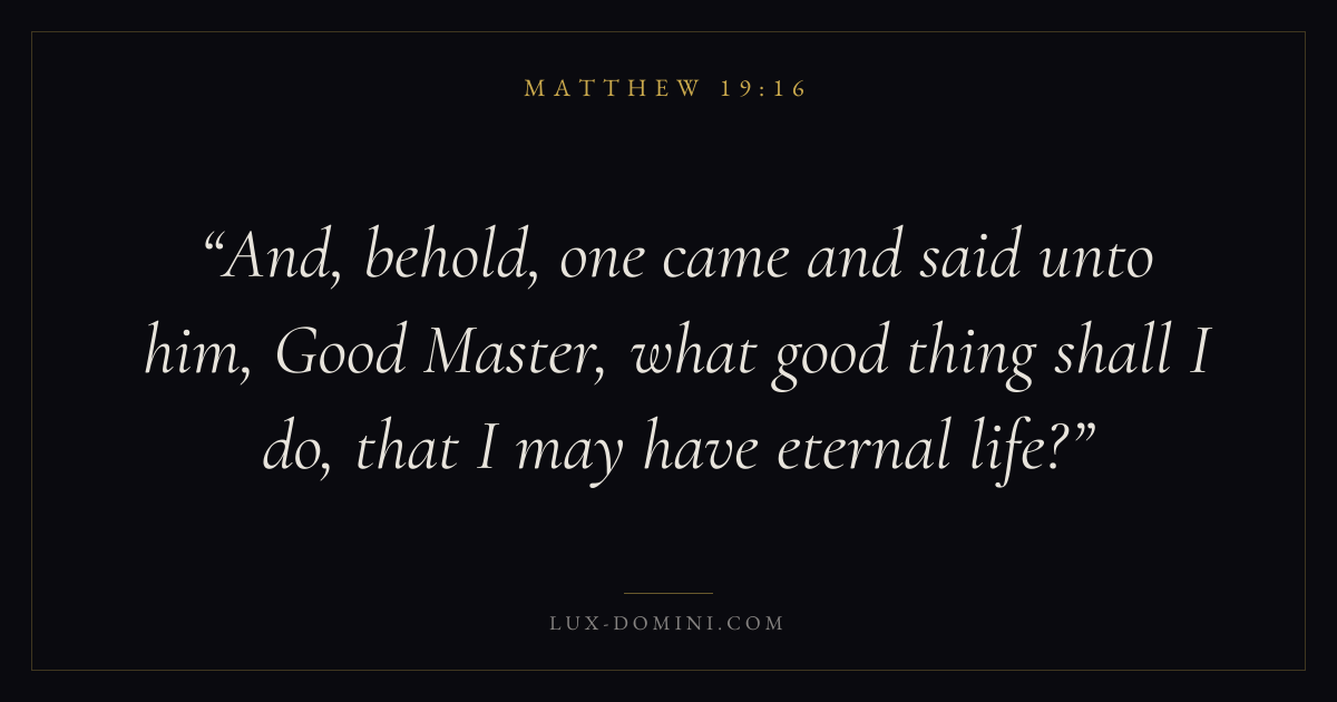 And, behold, one came and said unto him, Good Master, what good thing shall I do, that I may have eternal life?