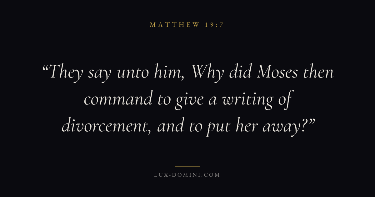 They say unto him, Why did Moses then command to give a writing of divorcement, and to put her away?