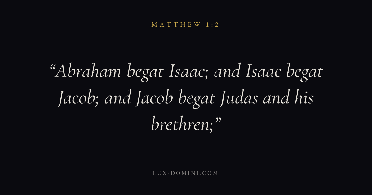 Abraham begat Isaac; and Isaac begat Jacob; and Jacob begat Judas and his brethren;