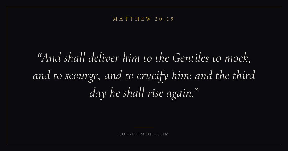And shall deliver him to the Gentiles to mock, and to scourge, and to crucify him: and the third day he shall rise again.