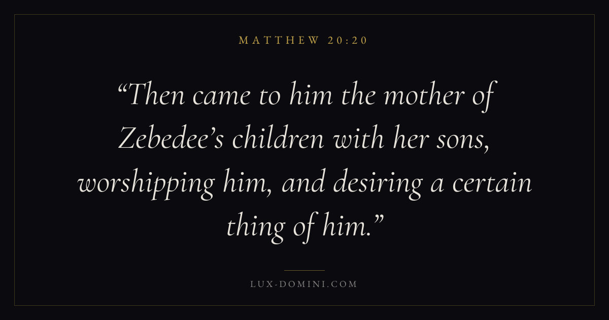 Then came to him the mother of Zebedee’s children with her sons, worshipping him, and desiring a certain thing of him.