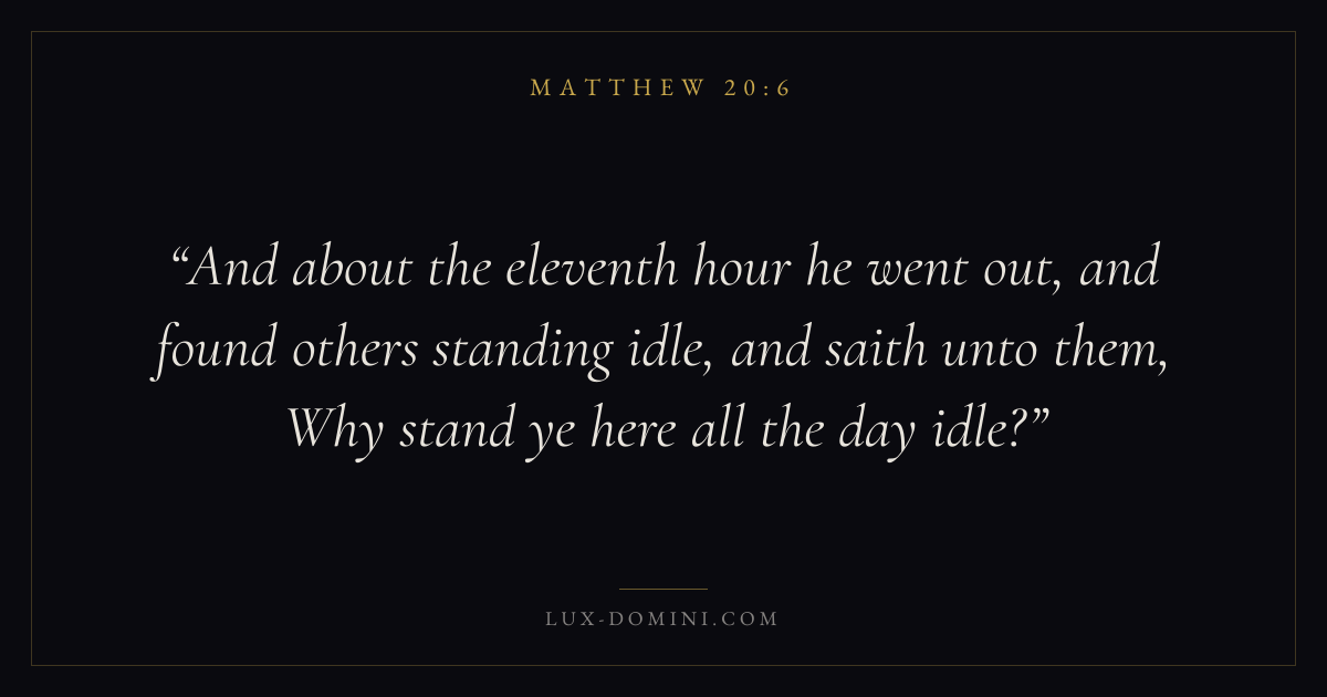 And about the eleventh hour he went out, and found others standing idle, and saith unto them, Why stand ye here all the day idle?