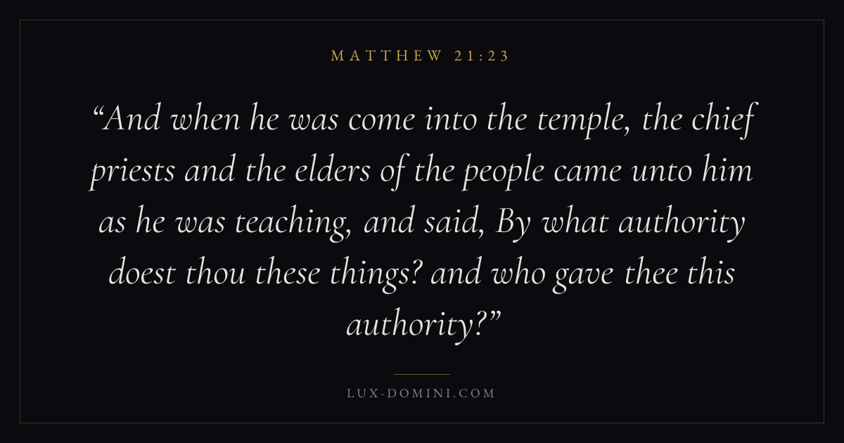 And when he was come into the temple, the chief priests and the elders of the people came unto him as he was teaching, and said, By what authority doest thou these things? and who gave thee this authority?