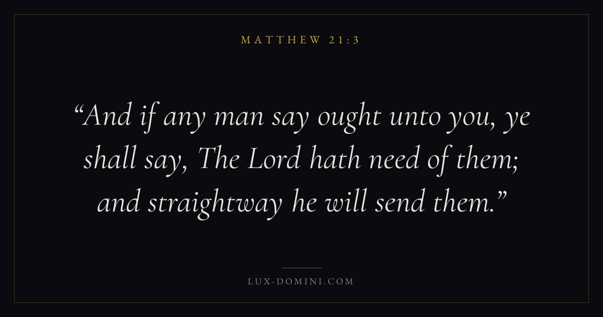 And if any man say ought unto you, ye shall say, The Lord hath need of them; and straightway he will send them.