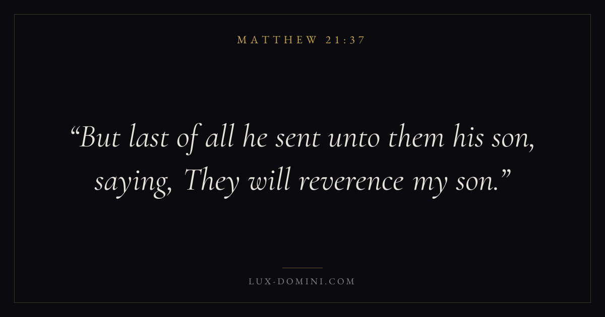 But last of all he sent unto them his son, saying, They will reverence my son.