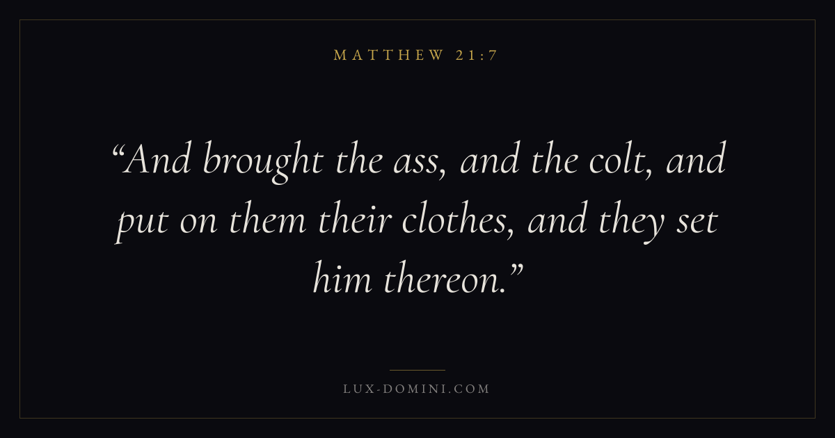 And brought the ass, and the colt, and put on them their clothes, and they set him thereon.