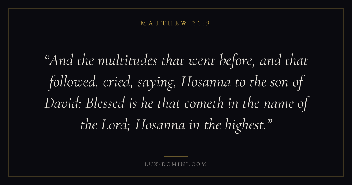 And the multitudes that went before, and that followed, cried, saying, Hosanna to the son of David: Blessed is he that cometh in the name of the Lord; Hosanna in the highest.