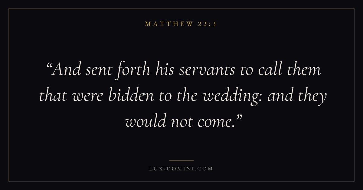And sent forth his servants to call them that were bidden to the wedding: and they would not come.