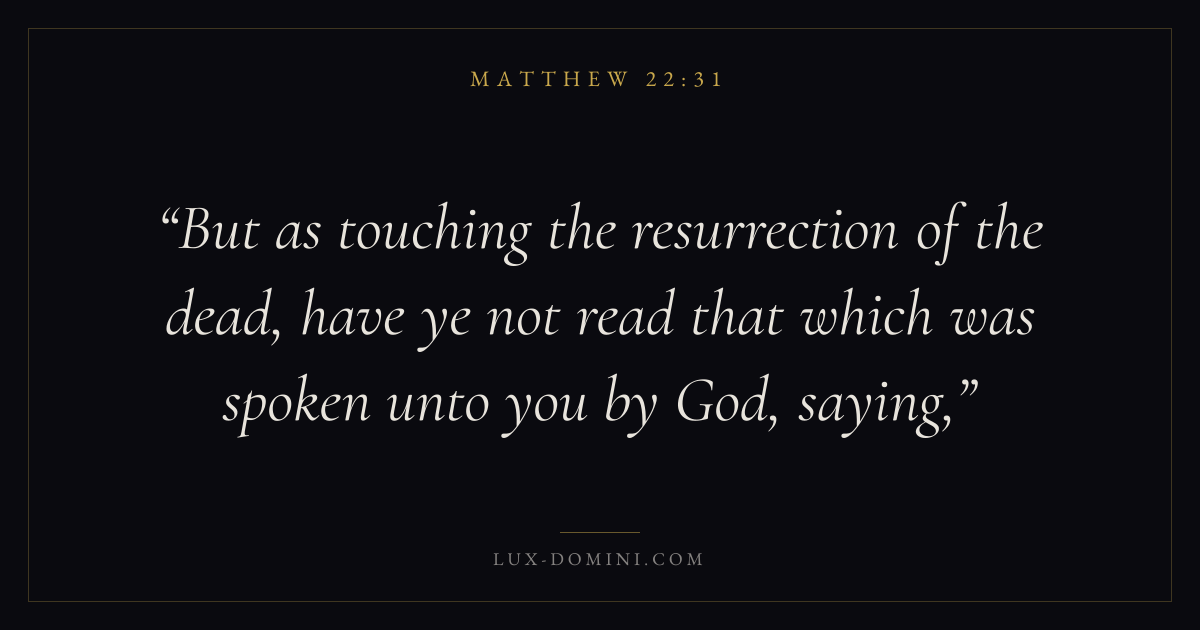 But as touching the resurrection of the dead, have ye not read that which was spoken unto you by God, saying,