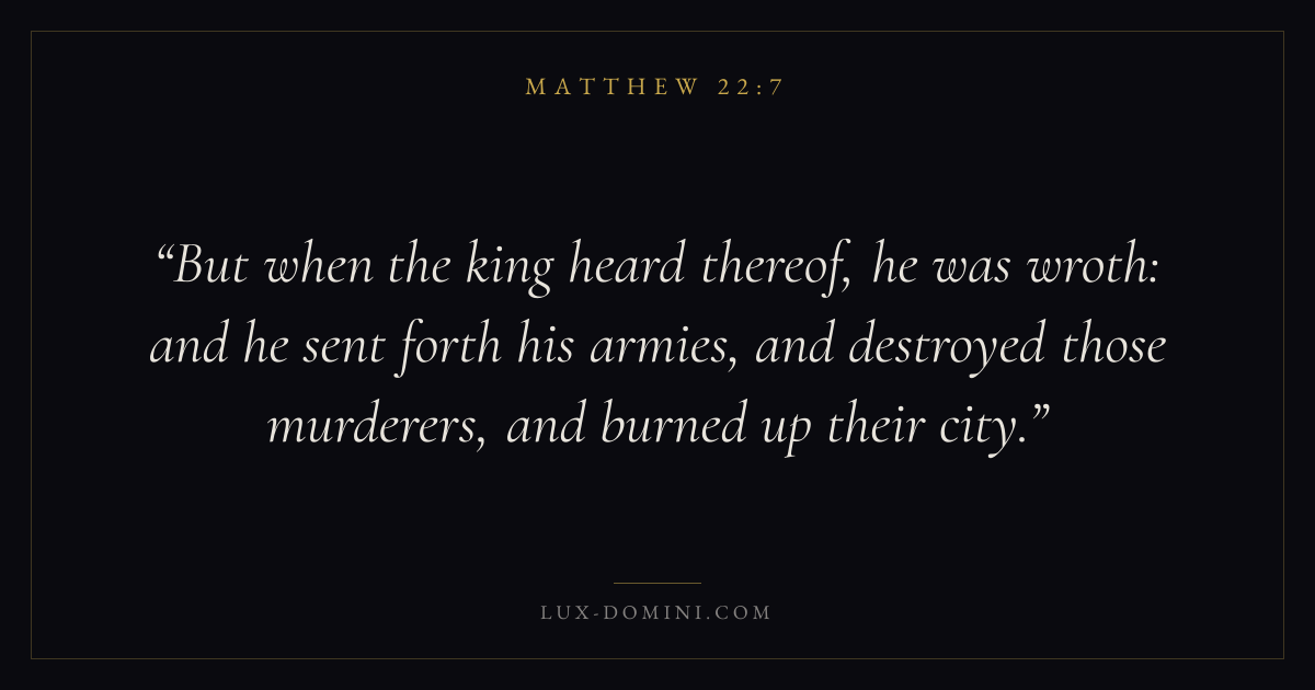 But when the king heard thereof, he was wroth: and he sent forth his armies, and destroyed those murderers, and burned up their city.