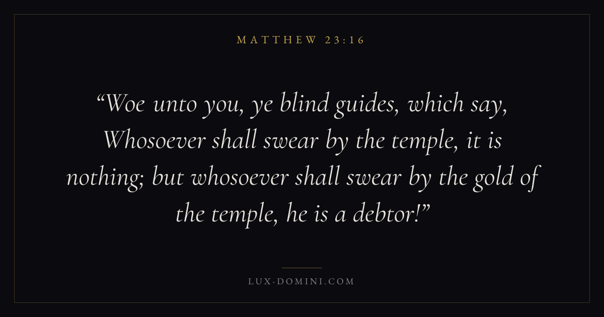 Woe unto you, ye blind guides, which say, Whosoever shall swear by the temple, it is nothing; but whosoever shall swear by the gold of the temple, he is a debtor!