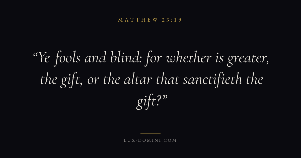 Ye fools and blind: for whether is greater, the gift, or the altar that sanctifieth the gift?