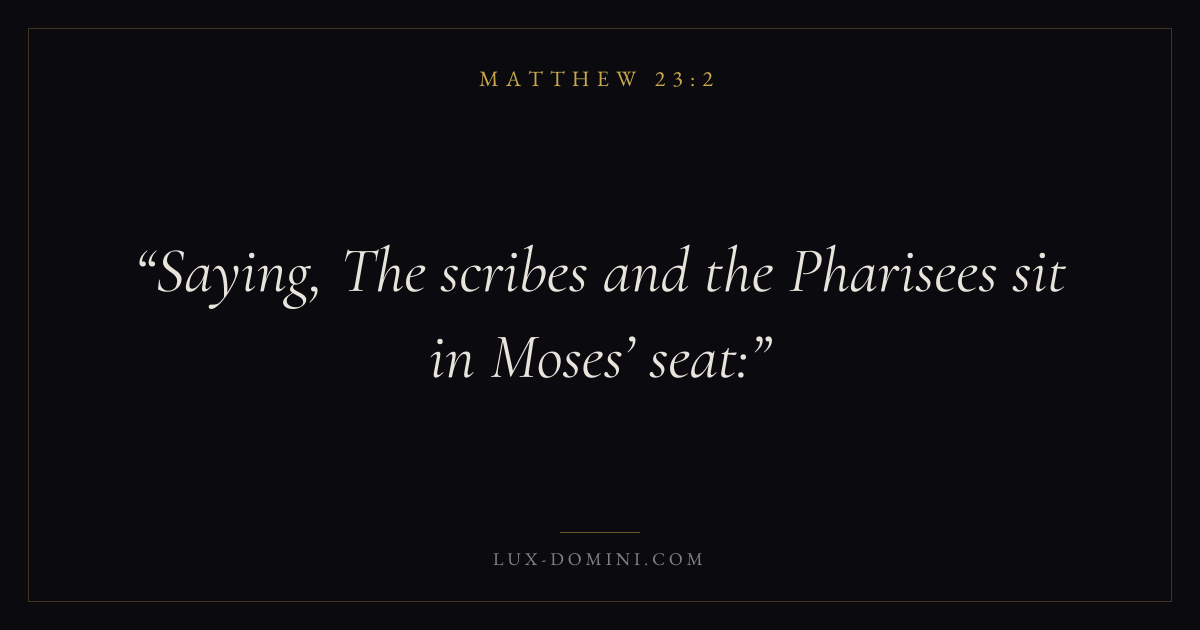 Books / Matthew / Chapter 23 / Verse 2 ← Matthew 23:1 Matthew 23:2 Matthew 23:3 → Saying, The scribes and the Pharisees sit in Moses’ seat: Download verse card Share on Twitter Share on Facebook Pin it ✦ Key themes FulfillmentKingdom of heavenDiscipleshipTeaching Read with Matthew 23:1Matthew 23:3 ✦ Matthew Chapter 23 verses V. 1 V. 2 V. 3 V. 4 V. 5 V. 6 V. 7 V. 8 V. 9 V. 10 V. 11 V. 12 V. 13 V. 14 V. 15 V. 16 V. 17 V. 18 V. 19 V. 20 V. 21 V. 22 V. 23 V. 24 V. 25 V. 26 V. 27 V. 28 V. 29 V. 30 V. 31 V. 32 V. 33 V. 34 V. 35 V. 36 V. 37 V. 38 V. 39