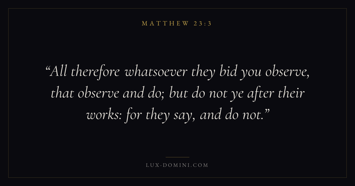 All therefore whatsoever they bid you observe, that observe and do; but do not ye after their works: for they say, and do not.