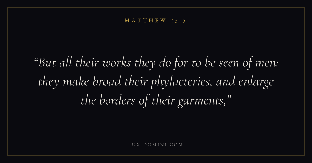 But all their works they do for to be seen of men: they make broad their phylacteries, and enlarge the borders of their garments,