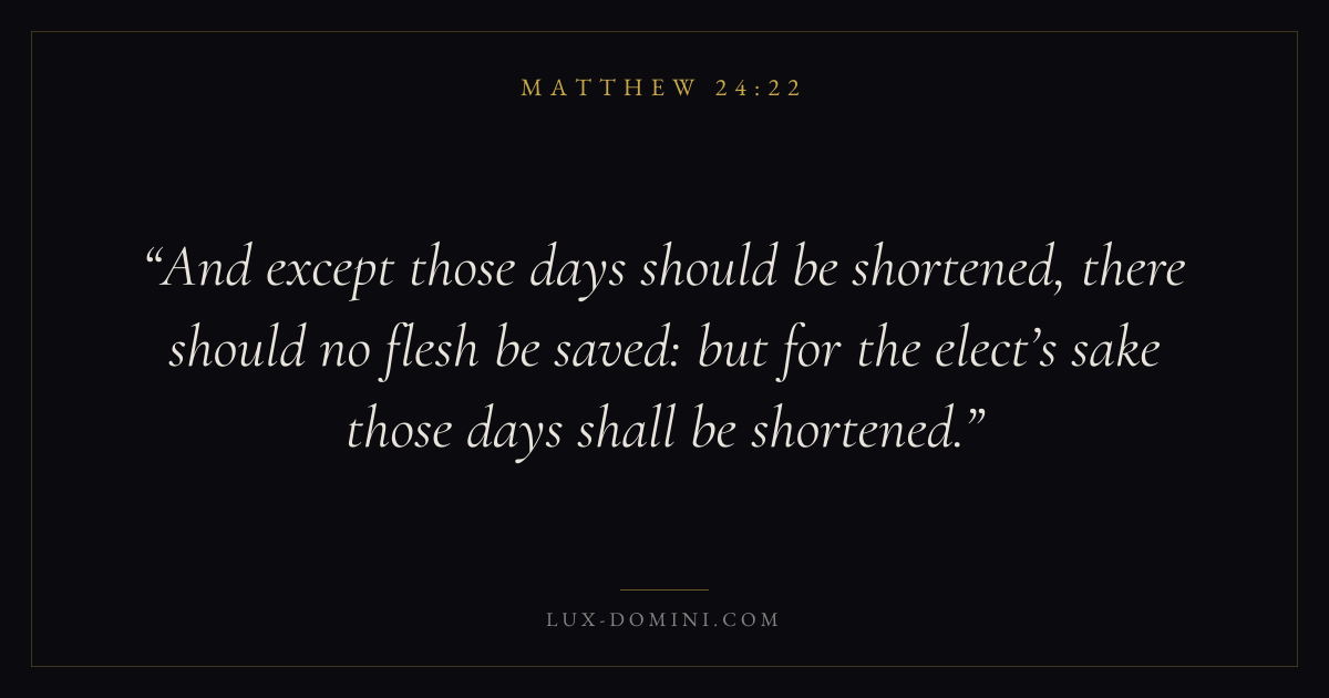 And except those days should be shortened, there should no flesh be saved: but for the elect’s sake those days shall be shortened.
