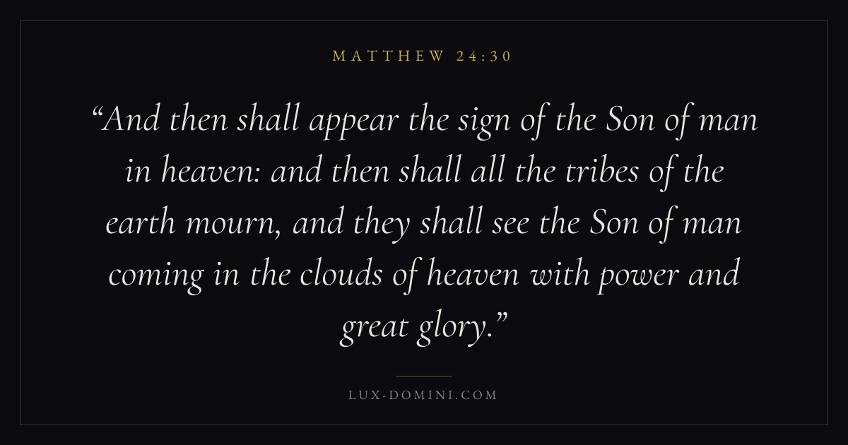 And then shall appear the sign of the Son of man in heaven: and then shall all the tribes of the earth mourn, and they shall see the Son of man coming in the clouds of heaven with power and great glory.