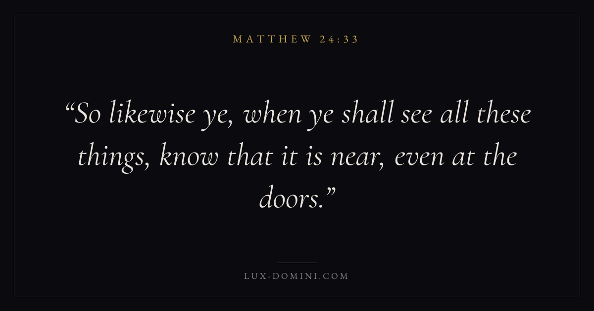 So likewise ye, when ye shall see all these things, know that it is near, even at the doors.