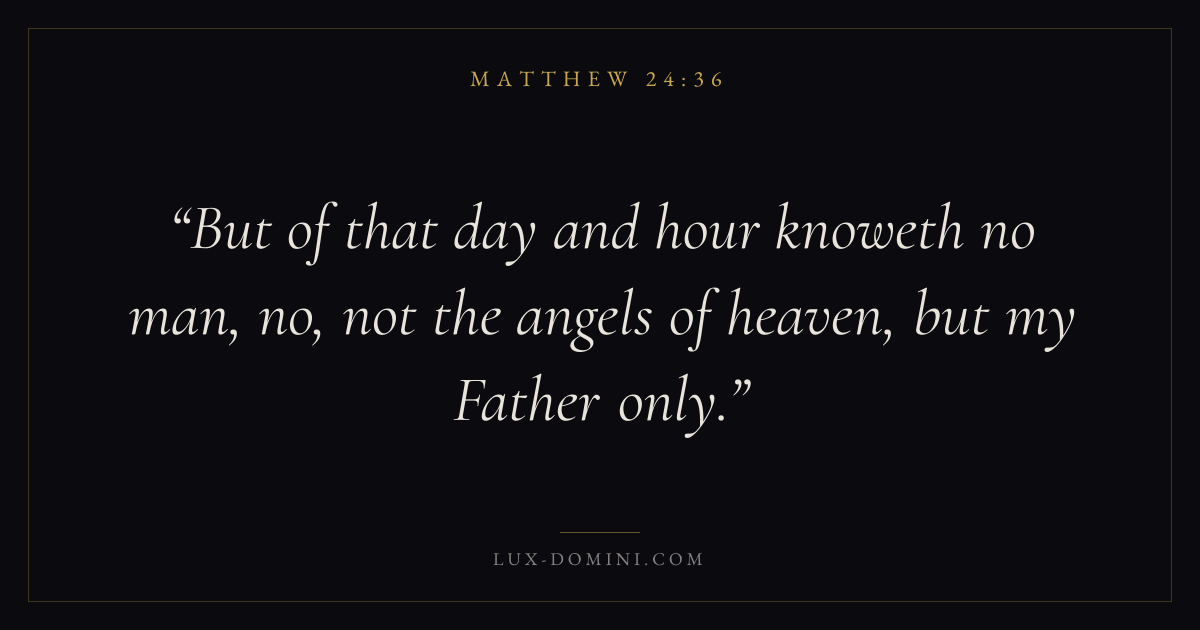 But of that day and hour knoweth no man, no, not the angels of heaven, but my Father only.