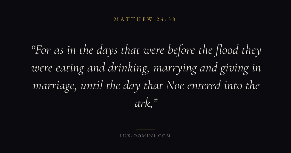 For as in the days that were before the flood they were eating and drinking, marrying and giving in marriage, until the day that Noe entered into the ark,