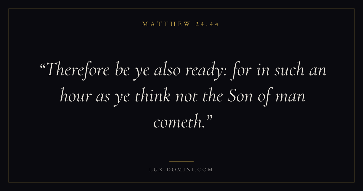 Therefore be ye also ready: for in such an hour as ye think not the Son of man cometh.