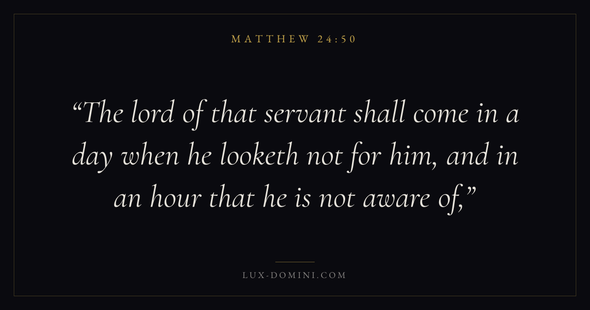 The lord of that servant shall come in a day when he looketh not for him, and in an hour that he is not aware of,